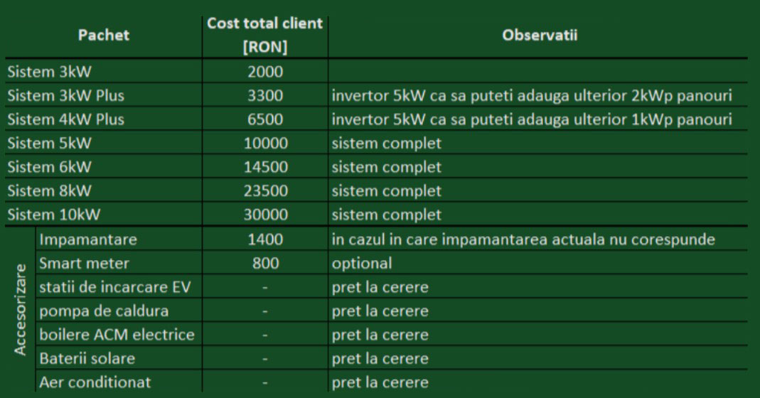 Livrăm tot sistemul la cheie, noi ne ocupăm de toată documentația pentru dumneavoastră, ofertă transparentă fără alte costuri ascunse (inclusiv asistență pentru documentația necesară pentru a deveni prosumator)
